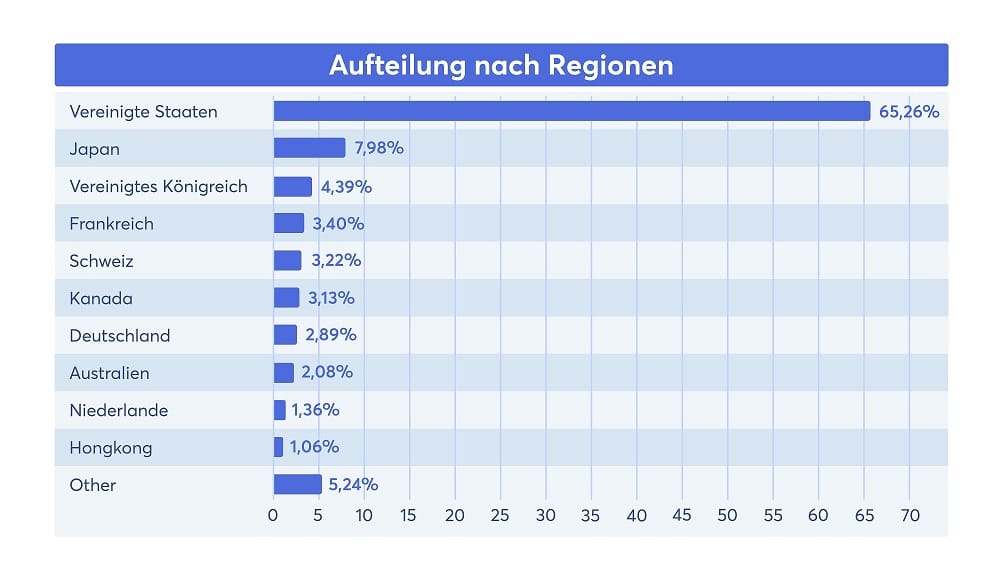 In our example ETF, which tracks the MSCI World, there are more than 1,600 individual companies included, spread across many countries and sectors. In the factsheet, you will find an overview of the sectors and regions in which your ETF is invested.